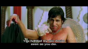 @Memsaab – Hello! I kept thinking of Amrish Puri and his commitment to being seriously evil – sadly lacking in Sonu Sood who is more giggly evil. However, of the two I know who I prefer to see shirtless 🙂
