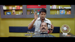 Despite the way in which Baskaran meets Chandrika and his subsequent idiotic antics, Chandrika seems fine with the idea of marriage. Perhaps she sees something in Baskaran that I don’t but he doesn’t seem like much of a catch for a well educated girl with a good job and excellent matrimonial prospects. It could be that this is part of the comedy that I just don’t get, but for whatever reason she encourages him in his quest to win her hand.