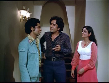 Neelam is in love with Vijay, and his preference for Neeta/Geeta tips her into a foolish alliance with the bad guys. I suspect there were some underlying wardrobe envy issues as Shabana got the good wife sari collection and Aruna was stuck with a puffy sleeved princess pink frock.