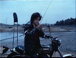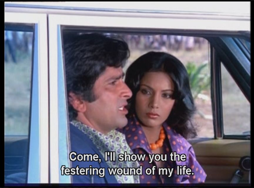 Fakira opens with young lads Vijay and Ajay forced to stand by and watch their parents die in a blaze caused by rowdies who are trying to cover up evidence. Shortly afterwards the boys are beaten, chased by the evil rowdies and, of course, separated. They start new lives that will take them on very different journeys, although Vijay still has his friend Popat to hang on to. It’s all quite depressing and badly acted (I cheered each time a kid got slapped) and I think you could safely start the film about fifteen minutes in and not feel the lack. Just make a mental note to keep a lookout for a photo and a significant song. And if you hop in at the fifteen minute mark, you will see this display of Shashi’s driving style: