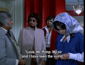 2. Oh my stars, how I LOVE this movie! I remember laughing almost all the way through it. That poster you included – what an odd choice the artist made to include Shashi in his weirdo costume clutching Zeenat’s jaw? He looks more like a villain than a hero.