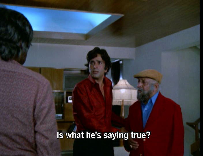 Eventually Bhola finds out the truth about his parentage. His biological father and brother need help to clear their names and bring Amarchand to justice, and it’s a chance for the petty crim to change his fate. The final confrontation must have given director Brij food for thought – it involves Shashi, Ashok and Pran in disguise, rain, lots of mud, a tiger and a bucket.