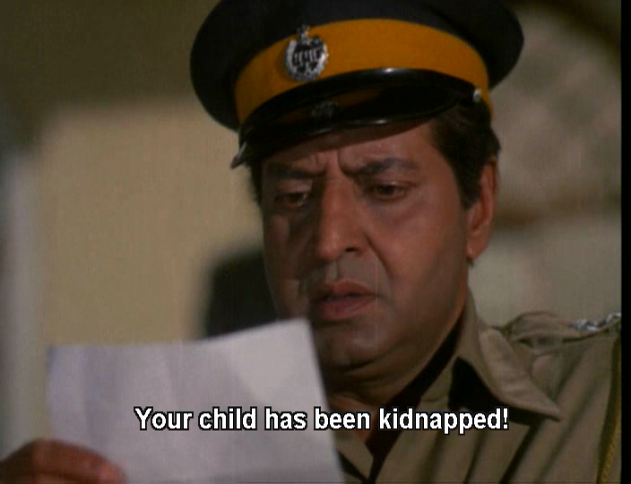 A child is kidnapped, only to see the criminal Amarchand (Anwar Hussain) stymied by Inspector Kumar (Policeman PRAN!). Kidnapping was clearly Amarchand’s go to plan as before long, Inspector Kumar’s eldest son is also abducted. This tactic fails, as Pran announces he would sacrifice all of his children, not just one, to bring a crook to justice.