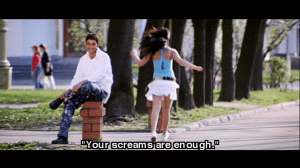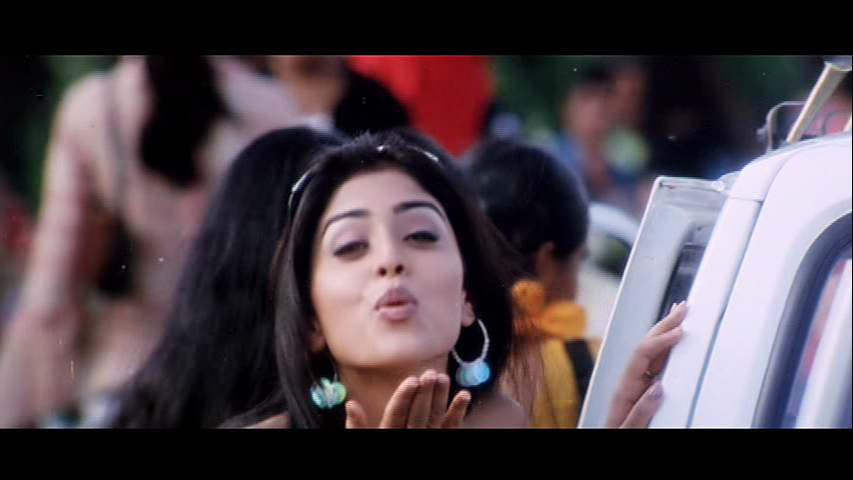 Mahesh also crosses paths with Rupa (Shriya) – a very annoying girl who invites her own downfall by….blowing a kiss at him. Yes! This cannot be allowed without some form of payback. How dare she! The only way honour can be satisfied is if he stalks her, then harasses her until she marries him.