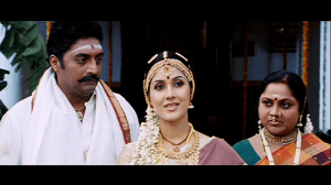 Prakash Raj is Bala Nayagar, a Madurai based bigwig. His wife, played by the still striking Saritha, is his perfect life partner Andal. She knows what he likes to eat, his moods, and when to kill people who annoy him. When their son Uday (Raja) wants to marry college sweetheart Meenakshi they are furious as his engagement to a rich girl had been fixed. The couple are enthusiastic but only moderately successful killers, and many of their schemes to remove Meenakshi fail to comedic effect.