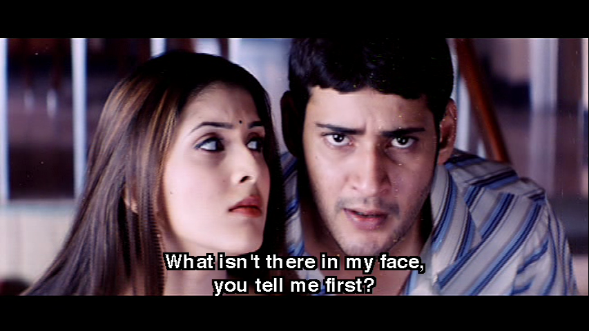 Often in a big star vehicle, the supporting characters are mere sketches. But Gunasekhar has populated the film with memorable people played by excellent actors.  As in the previous Mahesh/Gunasekhar project, Okkadu, there is a strong web of relationships that makes it much more engaging. Arjun (Mahesh) is a protective twin determined to look after his sister Meenakhi (Keerthi Reddy). He isn’t one of those sociopath heroes who exist in isolation. There is a pleasantly lived in look to the family home, his office worker parents wear slightly dowdy clothes, and their story is firmly middle class. It’s refreshing to have a hero with a family and to see a sister be more important than a prospective girlfriend. But they are not angels.
