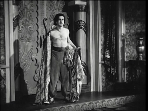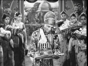 The visuals perfectly match the story book action and characters, with the painted backdrops reinforcing the fantasy element. The special effects are lots of fun (especially considering it was the 1950s).  I saw Sri Rama Rajyam on Friday night and despite the apparently huge budget for CGI, I found the effects more distracting than beautiful. I know that is a devotional film, and this isn’t but it made me think about the use of visual effects in films that are depicting an alternate reality. Patala Bhairavi keeps the people at the centre. When someone pulls on an invisibility cloak, other characters react to this amazing sight – the gimmicks support the story. In Sri Rama Rajyam, they chose to use CGI for things like birds, leaves, foliage, peacocks and deer to the point that it cluttered up the screen. It detracted from the story and from the actors. I appreciated the mastery of Kadri Venkata Reddy. He and the team including writers Subbanna Deekshitulu, Kamalakara Kameshwara Rao, Pingali Nagendra Rao art director Madhavapeddi Gokhale and DOP Marcus Bartley  have created a really beautiful fantasy realm with an engaging story.