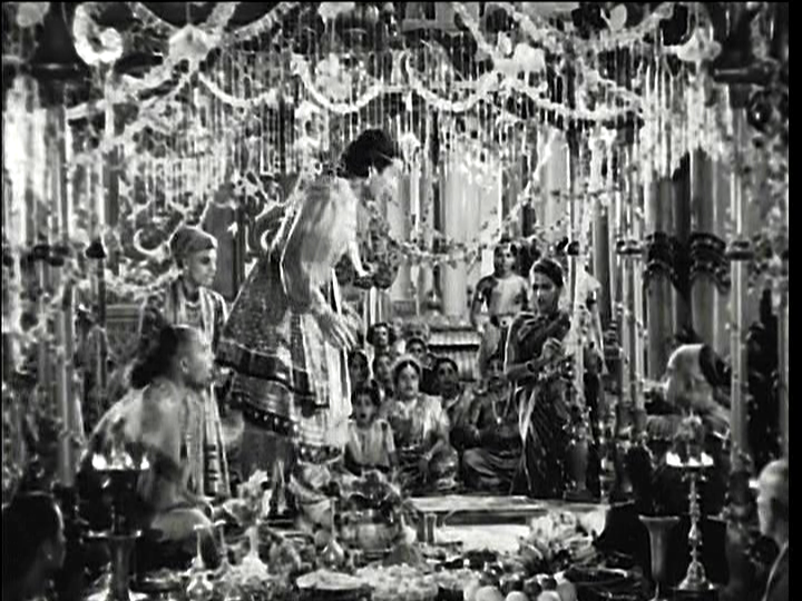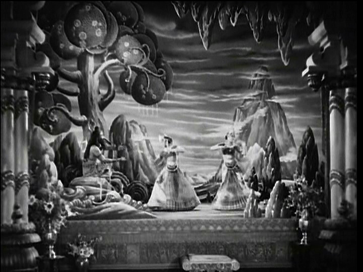 When I say the sets were lavish – there are 3 separate credits for set design, moulding and painting and I think they earned their keep. When Ramudu takes the royal family on a tour of his magically appointed residence, the building is stunning. This song includes some performances by his household dancers (including Savitri), and the sets are just delightful. I’ve screen capped if you can’t be bothered with the song clip.