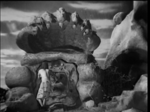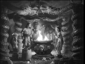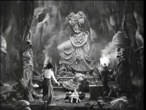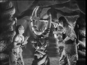 Ramudu emerges from his dip triumphant, and worded up about the magician’s treachery by a goddess in the crocodile pond. Of course the sorcerer and his intended sacrifice have different ideas, and Ramudu wins that encounter and the idol.