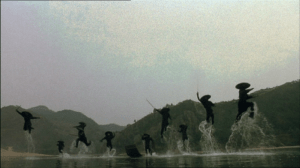 The film opens with Jin-ha (Hyeon-jun Shin) drifting down a river towards an army encampment. This gentle beginning doesn’t last long though as’ Ten Black Swordsmen’ explode out of the water and make quick work of the opposing Mongolian soldiers in the first of many excellently choreographed fight scenes. The next scene cuts to Jin-ha rather morosely sitting on a rooftop gazing forlornly at his lost love Sullie (Hee-seon Kim) and then quickly moves on to a flashback of their lives together as children. Jin-ha grows up under the tutelage of his uncle Kwakjung (Ju-bong Gi) and learns from the Bi Chun Shi Gi Sword Fighting Book – doesn’t every master swordsman have to start somewhere?
