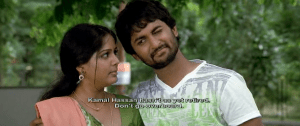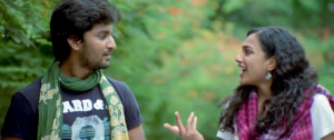 It’s not that the plot is unpredictable, but the way things happen is delightfully offbeat. In one of the obligatory fight scenes, Nithya takes on the loafers and belts the bejesus out of them as Gautham watches on. Gautham and his family are movie fans and use filmi terms in conversation. Nithya makes fun of Gautham’s job, doing dramatic voiceovers of everyday events. It’s a playful style.