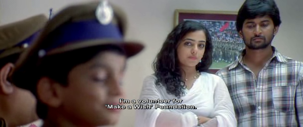 Gautham is a director on a news program. He has family, good friends, failed romances and a flair for the dramatic. The story is mostly told from his perspective, so I felt that I got to know him better, and I appreciated Nithya through his eyes as he came to understand her more. Nani is an appealing guy next door kind of hero. I think it’s his dimples. Plus he seems to have a sense of the ridiculous that was very endearing in this role. But Nani doesn’t play Gautham as all happy and smiling.