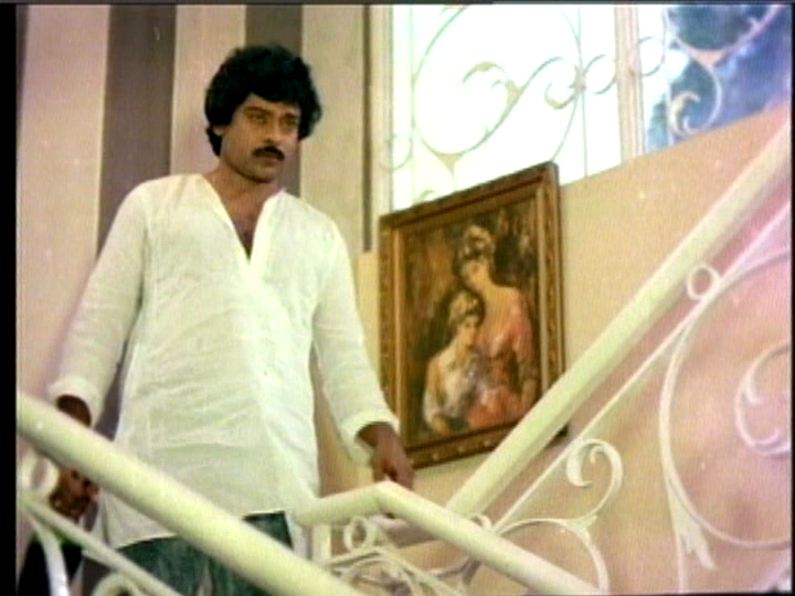 Chiranjeevi is Charan, a poor rich boy who just wants his father (Kongara Jaggaiah) to show him some affection. Charan spends his time winning every possible sporting and aeronautical trophy, beating people up, carousing and brooding in his room.