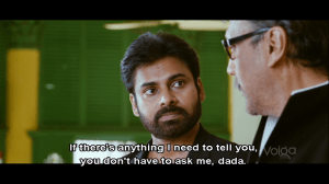The comedy is not too intrusive. Pawan Kalyan doesn’t mind playing for laughs and I really enjoyed the Mega Tribute as Jai was persuaded to pose with cut-outs for a photo. Brahmi and Ali are in character roles and their shtick is part of the story so it stays on track. The fight scenes orchestrated by Shyam Kaushal are brutal but not too bloody, and highlight Pawan Kalyan’s strengths. The editing and composition of the action sequences is top notch. Everything flows quite well and there is a consistent look and feel to the whole film.