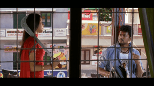 Sivakasi spends a lot of time blow-torching the same piece of perforated metal sheet so I am not sure how successful his business was. I suspect he was on commission at a local glazier as the number of window panes broken in fight scenes was HUGE. The character of Sivakasi is self-righteous and inflexible, and I could understand why he was single and stuck with a comedy gang as his only close friends. Vijay is good as a boyish prankster but once he has to deliver more serious dialogues, he is a bit lightweight and tends to overact in compensation. I can’t help comparing him with the other baby-faced killer in South Indian films and he just doesn’t stack up. But he is brilliant in the physical scenes, whether fights or dancing, and that is where I can more readily understand his star appeal.