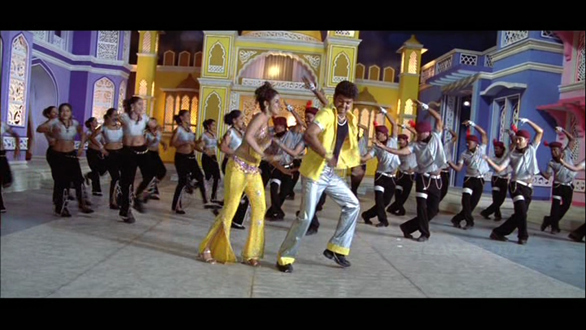 Her romantic song fantasy puts Vijay in a vintage pink suit so perhaps she has a more vengeful streak than was immediately apparent. I don’t like the female vocals at all in that song (Deepavali), but the dancing is fun.