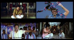 The relationship between Hema and Sivakasi starts as a cartoonish battle of the sexes, with each trying to put the other in their rightful place. It is fun but goes on longer than it needed to. Eventually the two declare their feelings but Sivakasi’s pride and temper keep getting in the way. Finding out he is an orphan, Hema accuses him of not knowing how to be a decent person as orphans can never understand love or affection. He then tells her his tragic backstory. Sivakasi chose his alias based on a horrible incident in his past, but he is really Muthappa, estranged from his well-off family. Hema says she can’t possibly marry someone who would desert his responsibilities over such an issue as it is likely he would do the same to her. She will only accept him if his family come to make an offer, showing that he has mended those fences.
