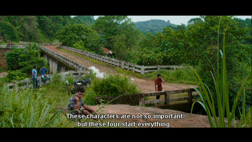 The film starts with a brief preface which sets up the first chapter.  Krishna Kumar (Nivin Pauly) enlists the help of his friends Anwar (Hemanth Menon), Joby (Vijeesh) and Kannan (Dhananjay) to raise some money to help pay for his sister’s wedding.  Rather interestingly his first option is to try for a bank loan, and when that fails the next plan is to try smuggling.  Hm – straight into illegal and criminal activity then without even the possibility of trying to get some work?  Must be the done thing in the Kerala highlands I guess since no-one seems to find this strange at all!  The first chapter deals with the friends attempt to find Nagamanikyam (the legendary snake pearl), to sell and raise money.  This naïve plan isn’t well developed in the narrative and as a result the first chapter feels laboured and unrealistic.  It’s unfortunate as it’s also the longest and the one that sets events in motion for subsequent chapters.  Although the theme of friendship is woven throughout, the individual relationships aren’t explored in any detail either and there never seems to be any reason for Kumar’s friends to sacrifice anything for him.