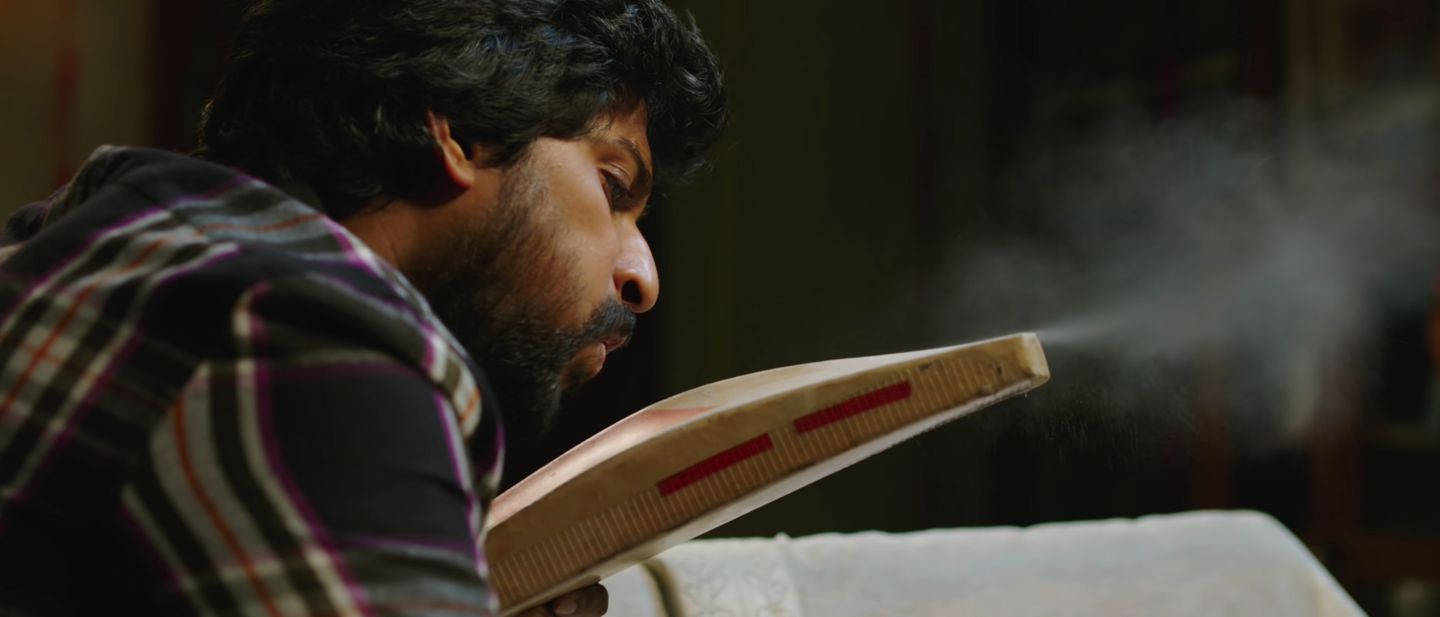 This isn’t a film where you have to know a lot about cricket or even enjoy watching the game to fully engage with the film. While the cricket sequences are beautifully, and realistically shot, the film is more about the passion Arjun has for the game and how this affects his relationships with everyone around him. To understand Arjun’s story there is a flash-back sequence to 1986, which shows him as a confident and successful cricketer at the top of his game. Life is going well, he’s in love with Sarah (Shraddha Srinath) and is on track to win a place in the India team. But when his place is taken by someone with better connections and a larger bribe, the disappointment shatters Arjun’s world and despite his coach Murthy (Sathyaraj) urging him to try again next year, Arjun vows to leave the sport for good.