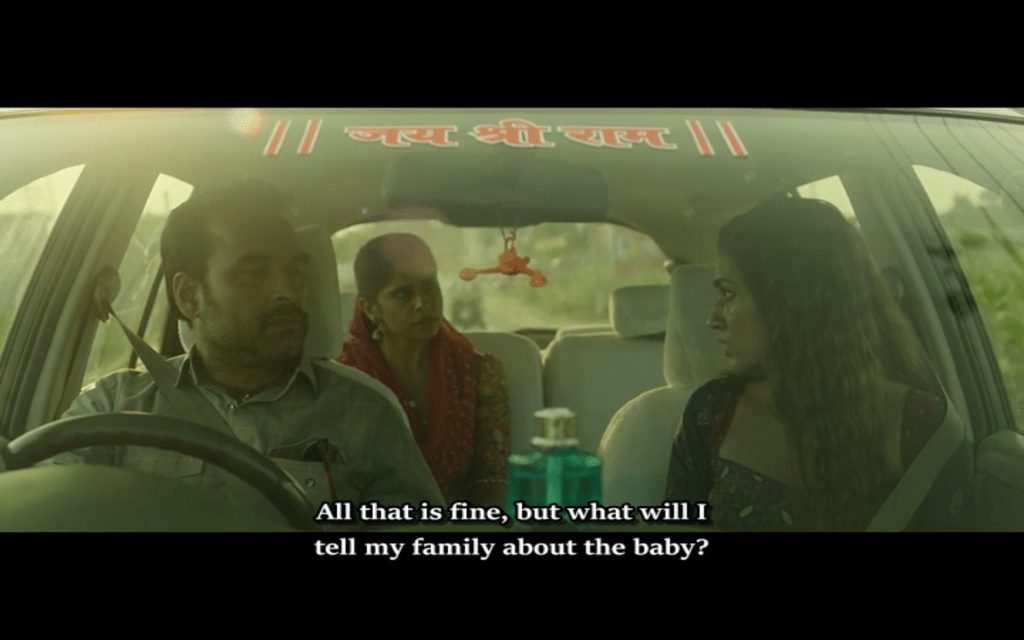 Although the remake follows the same basic plot of a young woman acting as a surrogate who is then left to bring up the child herself, the situation is far less believable. This time Summer (Evelyn Edwards) and her husband John (Aiden Whytock) present a more rational picture of an American couple looking for a surrogate, but their choice of mother is rather less successful. Mimi (Kriti Sanon) is an aspiring actress and dancer who decides to have the couple’s child to give her the necessary funds to advance her career. This is such a bizarre choice that isn’t helped by the inclusion of Bhanu (Pankaj Tripathi) as the couple’s driver who ends up staying to help look after Mimi as her pregnancy advances and then later when she is left to raise the child herself. This includes some attempts at comedy such as his being mistaken for Mimi’s husband when she is forced to return to her family for assistance, but none of this works well. Mimi’s attempts to conceal her pregnancy from her family are farcical and further attempted comedy around Mimi staying with her Muslim friend Sharma (Sai Tamhankar) also fall woefully short.