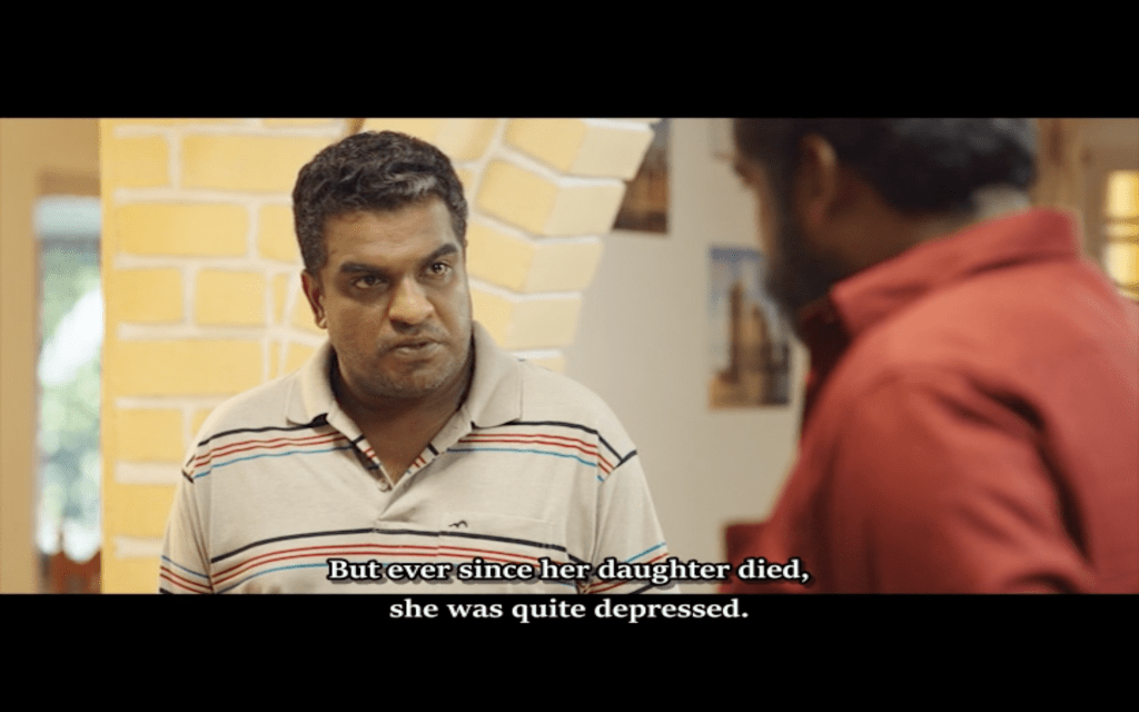 After their day out, Joseph is woken by one of his friends to explain that his ex-wife Stella (Athmiya Rajan) has been seriously injured in a car crash. Her current husband Peter (Dileesh Pothan) needs Joseph’s support during this difficult time. One of the best parts of the film is the depiction of the relationship between Joseph and Peter. Although the reason for Joseph’s estrangement from his wife is eventually revealed, his conversations with Peter, and Peter’s obvious respect and friendship with Joseph are also key in helping to define Joseph’s character. When Stella dies, it’s Joseph that Peter turns to for support and he trusts Joseph to find out the truth about the accident.
