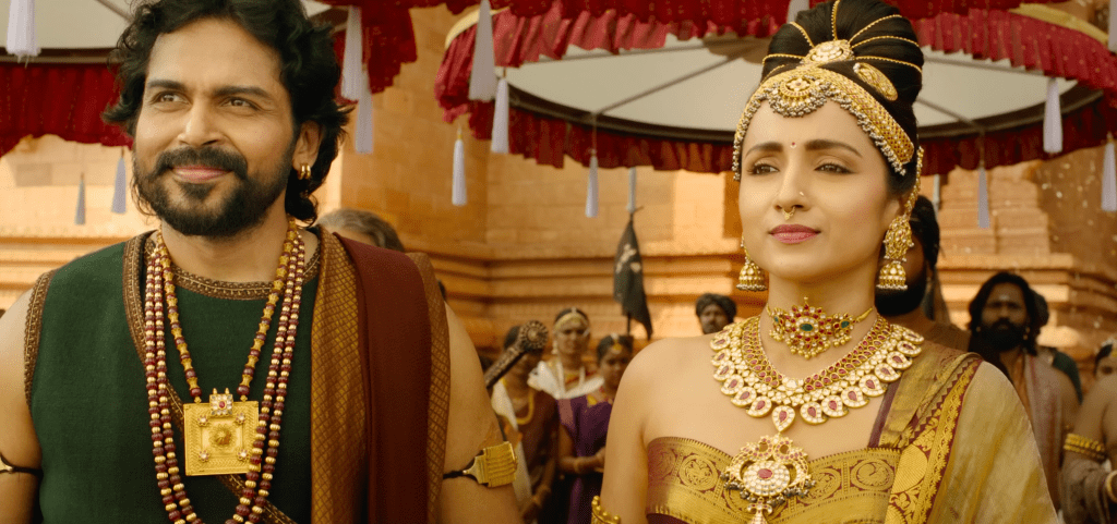 The rest of the support cast of thousands are all just as good as in PS1. There is no-one who seems miscast and all the various warriors, chieftains, rebels and assorted palace staff all excel in their roles and bring the story to life. A.R.Rahman’s music is just as perfect and enhances every aspect of the film, whether action, romance or drama. I especially love Chinnanjiru Nilave which plays during the romance of the young Aditya and Nandini, but I can’t find the video song. So instead here is the excellent Veera Raja Veera pictured on Aditya and the absolutely stunning Vaanathi (Sobhita Dhulipala).