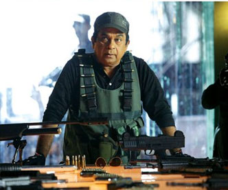 With some nice symmetry, while Gana is belting the living daylights out of gangsters to reclaim land they appropriated, uber-villain Vairam Dhanush (Aadhi) is cheerfully slaughtering villagers to grab their land for his pipeline project. Vairam likes the sound of his own voice and witters on about ‘background’ as if the concept may have some significance to the plot later on. Perhaps it was meant to, but since the background of neither Gana nor Vairam (or anyone else for that matter) is given anything more than a brief mention, Vairam’s insistence on the concept makes little sense.