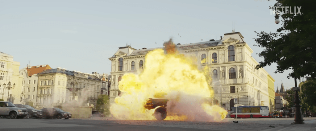 Court Gentry (Ryan Gosling) is recruited from prison by Donald Fitzroy aka Fitz (Billy Bob Thornton) to become a black ops agent for the CIA. In exchange for his freedom, he becomes the nameless Sierra Six who carries out assassinations for the organisation as directed – no questions asked. The film opens with Sierra Six in Bangkok to remove a target, later revealed to be another Sierra agent who passes on details of corruption within the agency. Six escapes with the information but CIA boss Denny Carmichael (Rége-Jean Page) sets private contractor and ex-agent Lloyd Hansen (Chris Evans) on his trail to eliminate Six and retrieve the information. Lloyd is a psychopath with no boundaries, which ensures plenty of collateral damage as he chases after Six. This includes kidnapping Fitz and his niece Claire (Julia Butters) to try and flush out Six, leading of course to a rescue mission by Six. Lloyd has numerous teams of assassins who attempt to kill Six in various locations across Europe while causing mayhem, carnage, and destruction in the process, but completely failing to succeed in their mission.