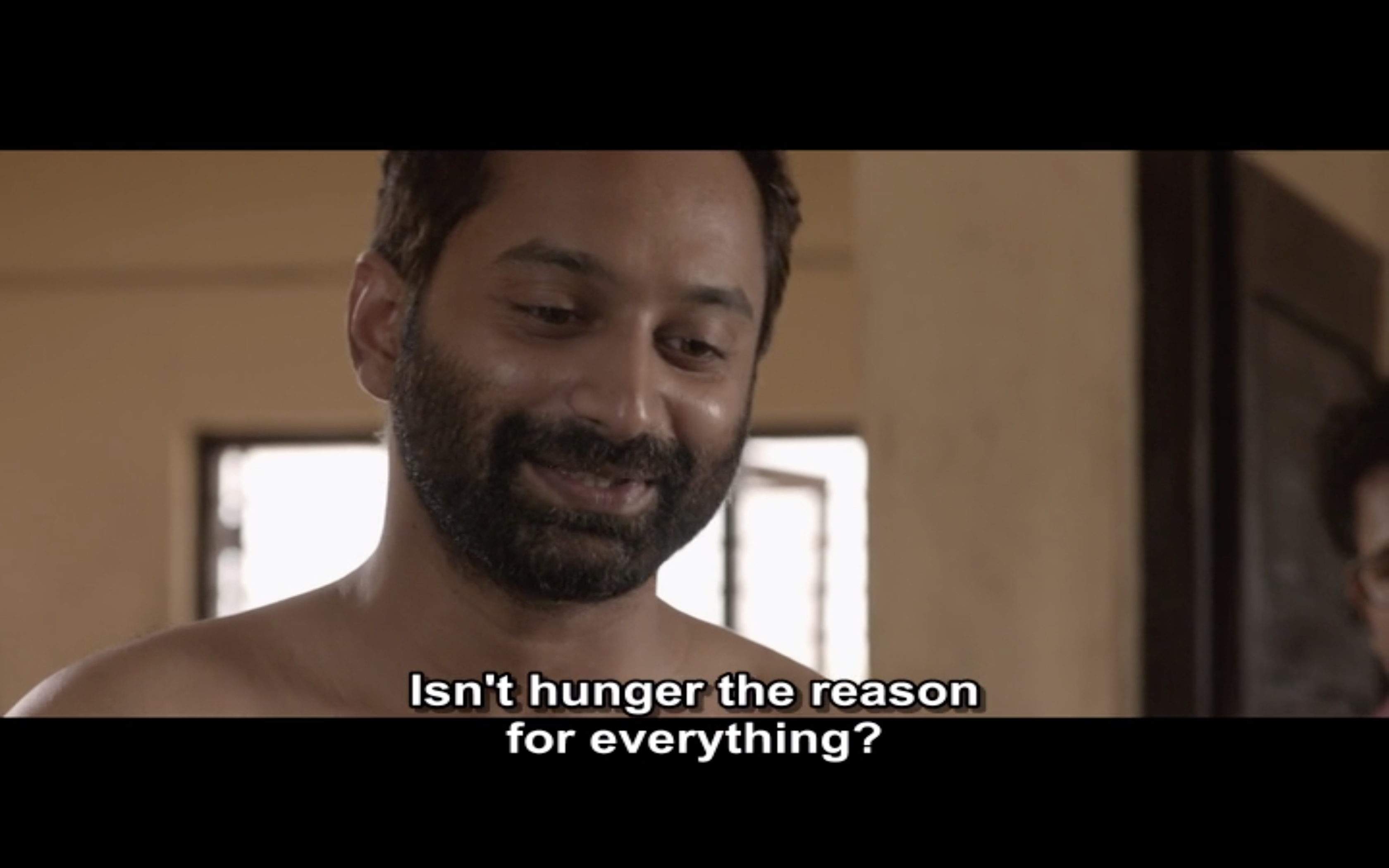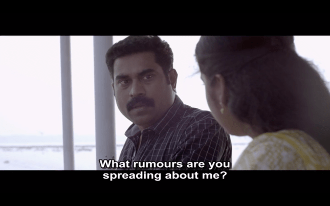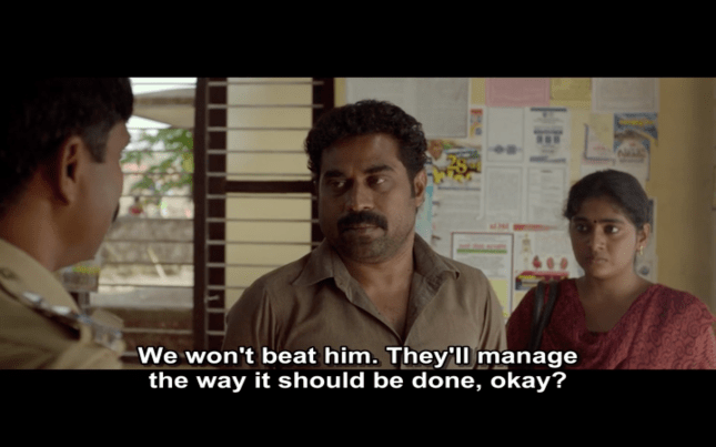 Having introduced Joseph as a solitary man who enjoys smoking, whiskey and marijuana, we then see a different side to Joseph on a day out with his friends (James Elia, Kijan), Sudhy (Sudhi Koppa) and Sidique (Irshad). I love the song they sing on their road trip, although the subtitles on the version I saw oddly substituted ‘rowers’ for ‘flowers’ which makes no sense to me at all. This is a more social side to Joseph and it’s clear to see why his friends respect him and enjoy his company, even if they don’t understand his wish to be alone in his house.