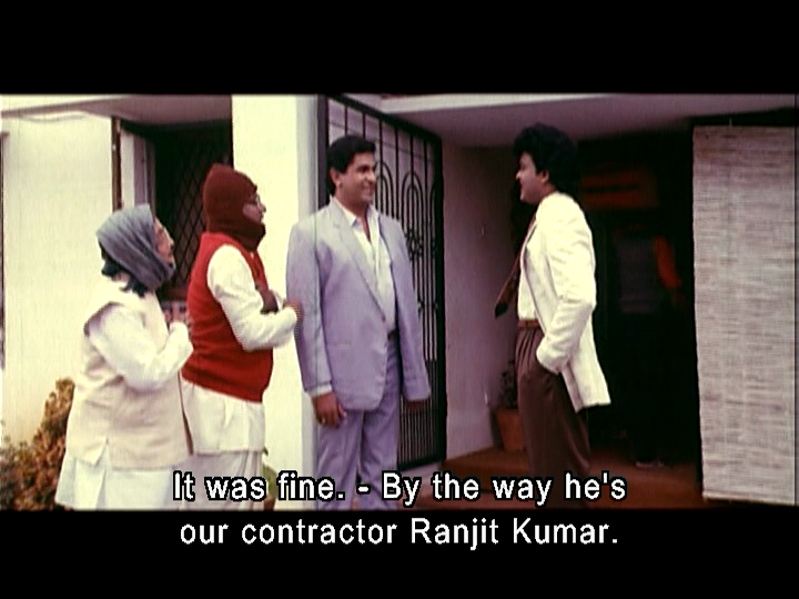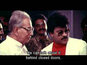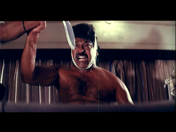 Her husband (Kaikala Satyanarayana) is a kindly man, but never directly confronts her so his goodness is moot. He seems to be waiting for Raja to deliver the comeuppance. Kota Srinivasa Rao plays her brother and well, apple…tree… Brahmanandam plays a comedy policeman and Babu Mohan is another comedy bad guy. So much ‘comedy’.