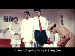There are loads of stunts and fights and dramatic incidents as Raja takes on his reluctant mother-in-law and her lackeys. The climax of the film takes place on a hijacked train. Exciting! But just in case that isn’t enough, director B Gopal added a lion! And if THAT isn’t enough, snakes! Snakes on a train! It was almost enough to overcome the rather weak (but family friendly) ending. And that approach probably sums up the whole film – throw enough stuff at the audience and they’re bound to like some of it.