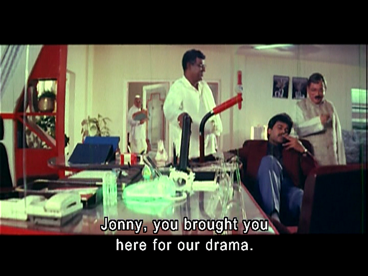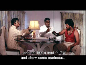 The song picturisations must have had a decent budget, and as with all good mass films there is something for everyone whether your tastes run to Filmi Tribal or random European street dancing. Illayaraja’s music matches well with the cartoonish style of action and adds to the lightheartedness. On the subject of cartoons: