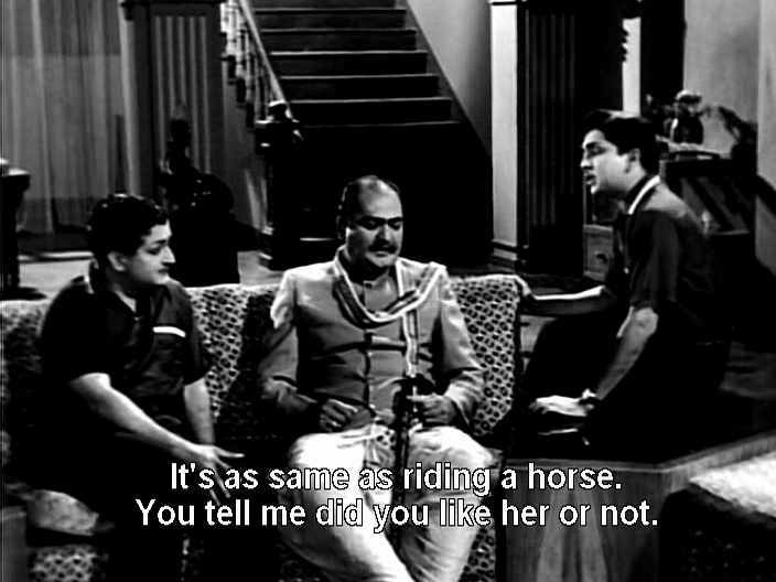 Patala Bhairavi is a wonderful fairytale complete with a pauper turned prince, a wicked wizard, a princess, a quest, flying castles, magic, disguises and divine intervention. This is not a stuffy staid classic; this is fun! I watched it without subtitles, but the story is clear and easy to follow. And the cast is fantastic – NTR, Malathi K, SV Ranga Rao , Relangi – and a young Savitri makes a small appearance. There are beautiful sets as well, and lovely music by Ghantasala. It really is a feast.