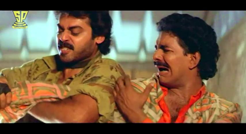 I really enjoyed Raja Verma’s gang of purple shirted thugs who carried guns in violin cases, and then played violins as background music in an interrogation scene. I think that is the first time I’ve heard the violence/violins pun in an Indian film. Tinnu Anand seems to have his own personal wind machine in all his scenes, maybe to stop him overheating from overacting. Annapurna is Krishna’s mum although she doesn’t get to do much apart from marvel at his awesomeness.