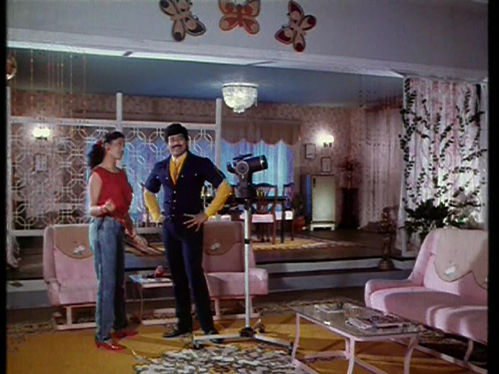 Despite being an unashamedly masala potboiler, there is some nice depth to the ‘good’ characters. Some key supporting characters find forgiveness and a kind of peace. There is a love triangle between Raja, Srilekha and Srikanya. Most of the romancing is confined to the songs which are usually a depiction of the girls’ fantasies. The drama develops between the two ladies, with one oblivious and one heartbroken and all too aware, the romance adding another tension to their already opposing views. Their close sibling bond and strong personalities informed their behaviour not just the love for an irresistible hero.