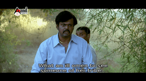 Nagendra Babu plays an enigmatic loner who wanders the wood in search of unseen justice (that’s what he says). Brahmanandam has a small role and Allu Ramalingaiah plays the crooked subordinate to the bad guys. Most of the humour comes from Chiru and Vijayashanti and the naff rapey jokes are left to Mohan Babu and the bad guys. There are lots of small details and symbols scattered through the film and I really enjoyed that extra dimension.