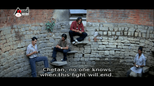 Raja (Chiranjeevi) is a graduate returning to his village home. That might explain why the subtitles say ‘coz. He’s so modern and citified. Raja is an orphan, adopted by village strongman Satyanarayana Kaikala. The local people funded his education, and he is back to repay them by working to make their lives better. He finds a mysterious tiger reservation has annexed the prime farming land, and the villagers are all in debt to bigwig Rao Gopal Rao and his creepy son Narasimham (Mohan Babu). Raja tries to fight for their rights in the courts but fails. He so disappoints the villagers that one of them drops dead in the court room, adding to the guilt trip. Raja decides he must deliver justice since the law won’t, even though the illiterate villagers were clearly swindled. Inspired by an old story his adoptive father used to tell, Raja becomes the Kondaveeti Donga!