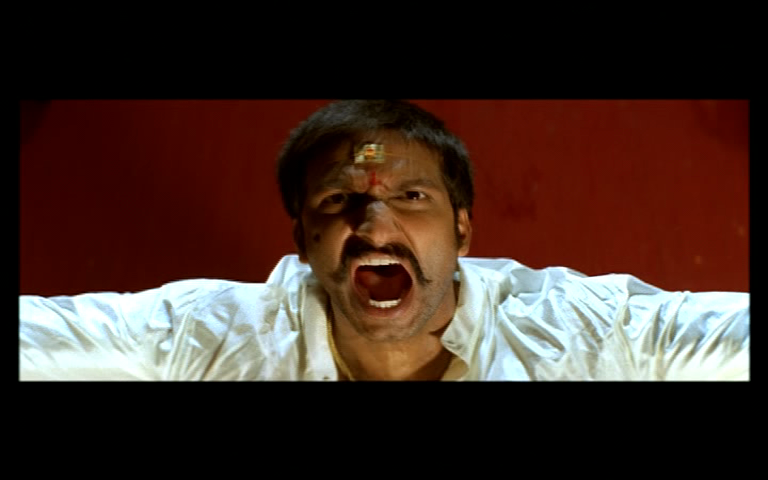 Gopichand is over the top yet effective as psycho Devudu who believes he is a god. He killed his boss Sidda Reddy (Jayaprakash Reddy) because Reddy took Devudu’s girl Malli (Raasi). He killed Venkateswarlu because Malli’s brother was accidentally killed in their confrontation. When he wasn’t getting all hands on with Malli he killed and killed and killed. Gopichand really goes for it boots and all, and Devudu creates some of the most striking visuals as his mania incorporates religious motifs.