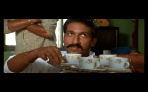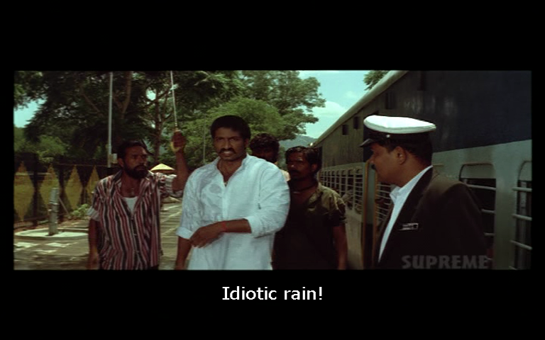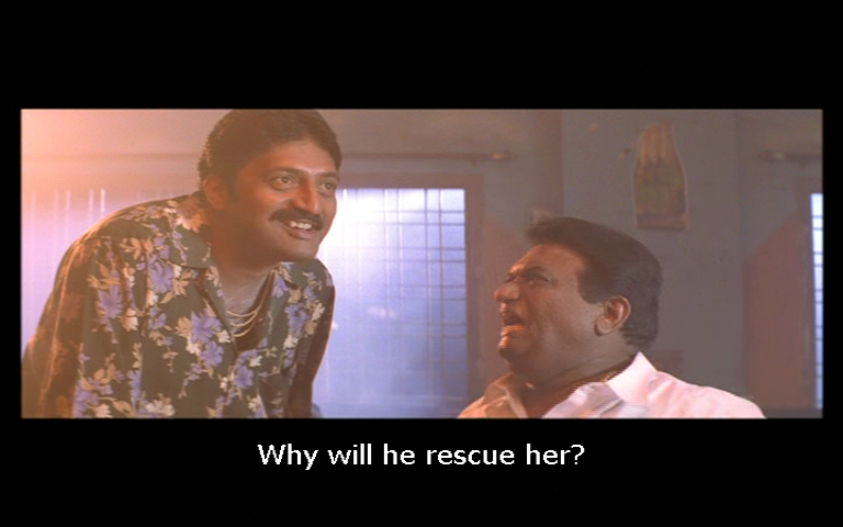 Rakshita was not bad but she had a thankless and poorly written role. I’ve read several reviews that think Janakis’s harassment of Rama is some manifestation of a woman owning her sexuality and should be celebrated. Some of those reviewers would be the first to cry ‘creepy/rapey/stalker’ when a male character behaves in the same way so I am not sure why they think this is a good thing. The whole drawn out gag with her pressing her breasts against Rama and teasing him with her newspaper padding went on for far too long. She does get a few good lines and I liked that she was unafraid, but I’m not sure if that was bravery or lack of self awareness. This song (which I could only find online in the Tamil version) is quite amusing though as Rama rebukes Janaki for behaving as though he is hers for the taking.