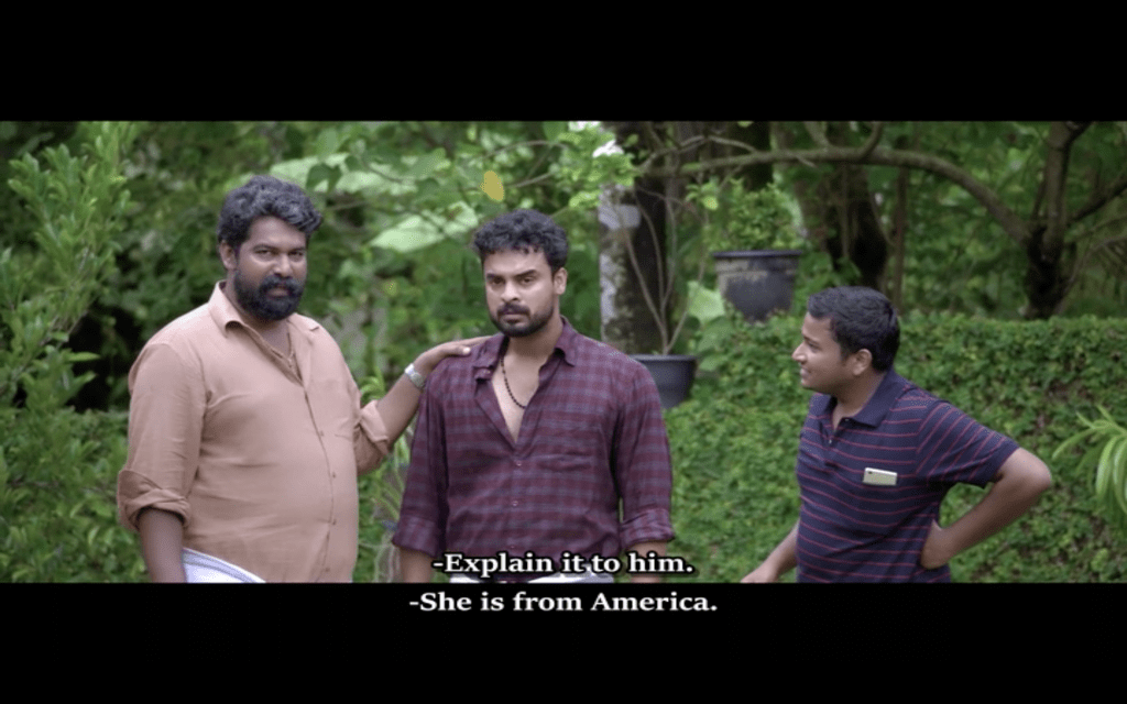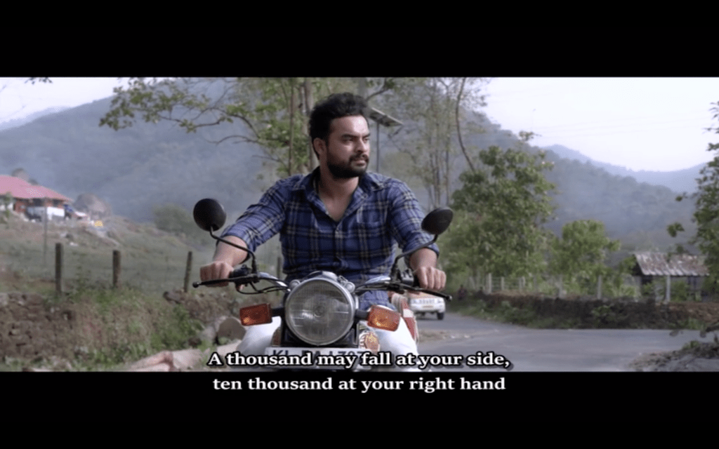 Having introduced Joseph as a solitary man who enjoys smoking, whiskey and marijuana, we then see a different side to Joseph on a day out with his friends (James Elia, Kijan), Sudhy (Sudhi Koppa) and Sidique (Irshad). I love the song they sing on their road trip, although the subtitles on the version I saw oddly substituted ‘rowers’ for ‘flowers’ which makes no sense to me at all. This is a more social side to Joseph and it’s clear to see why his friends respect him and enjoy his company, even if they don’t understand his wish to be alone in his house.