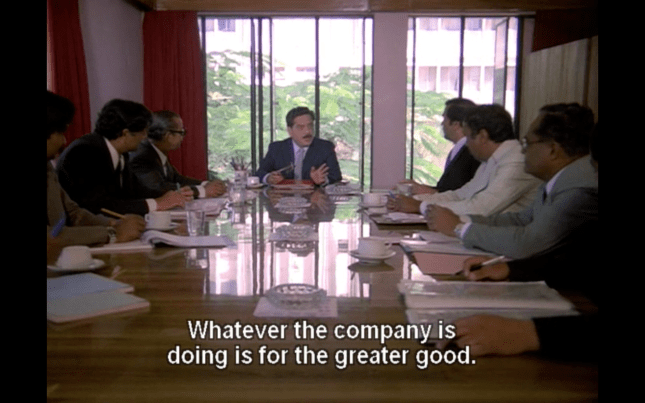 On his return to Bangalore, Chennabassapa continues to demonstrate his total lack of empathy when retrenching workers from one of his factories. Despite other members of his team pointing out that it’s not about the monetary compensation, Chennabassapa ignores the humanitarian aspects and continues to concentrate only on profit, although he does pay off his workers in line with government regulations. It’s not that he is mean and only focused on profit, but he sees his workers as just another commodity and not worth any further consideration once he has no further use for them. Chennabassapa is a man of science and rationality, convinced of his own superiority and sure that he is always right, but by the end of the film, this is shown to be a bad thing, and not something to be proud of at all!