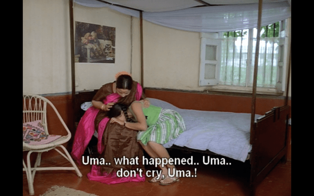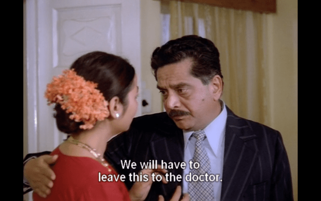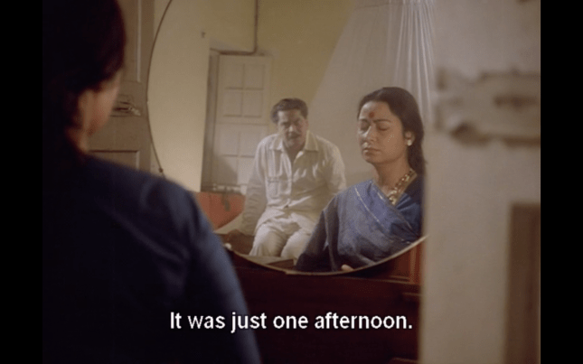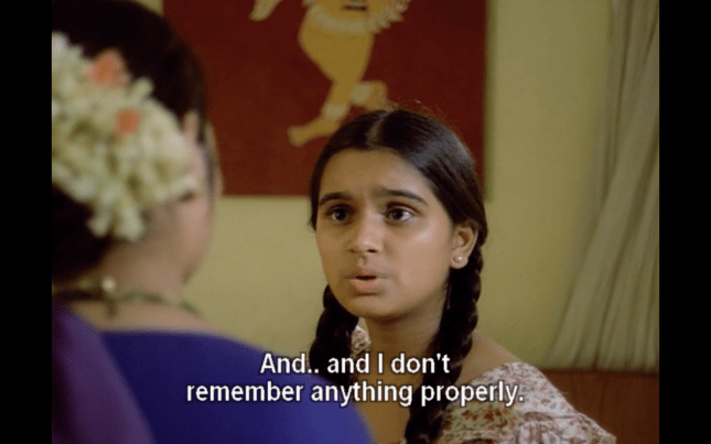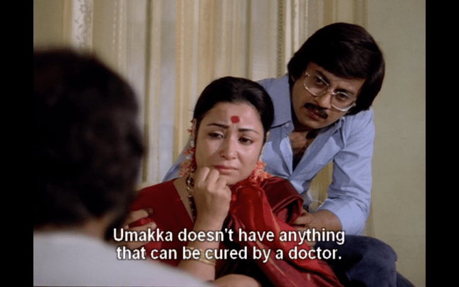 Shortly after Chennabassapa’s return from his village, his daughter Uma (Padmini Kolhapure) starts to behave very oddly, waking up screaming and speaking about events from Chennabassapa’s past in an odd voice. Unlike Chennabassapa, his wife Saroja (Indrani Mukherjee) is very superstitious and although she is accepting of the decision to take Uma to see a doctor, she also looks for other remedies and more traditional cures to help her daughter. As part of her treatment Uma undergoes shock therapy, which Chennabassapa’s son Nandu (Anant Nag) vehemently argues against. He is convinced that this will have a detrimental effect on his young sister and instead takes her out for rides on his motorcycle and trips to parks to help try and recover her senses. However, this seems to backfire as Uma then shockingly tries to seduce Nandu in front of their parents, and she continues to reveal indiscretions from Chennabassapa’s past.