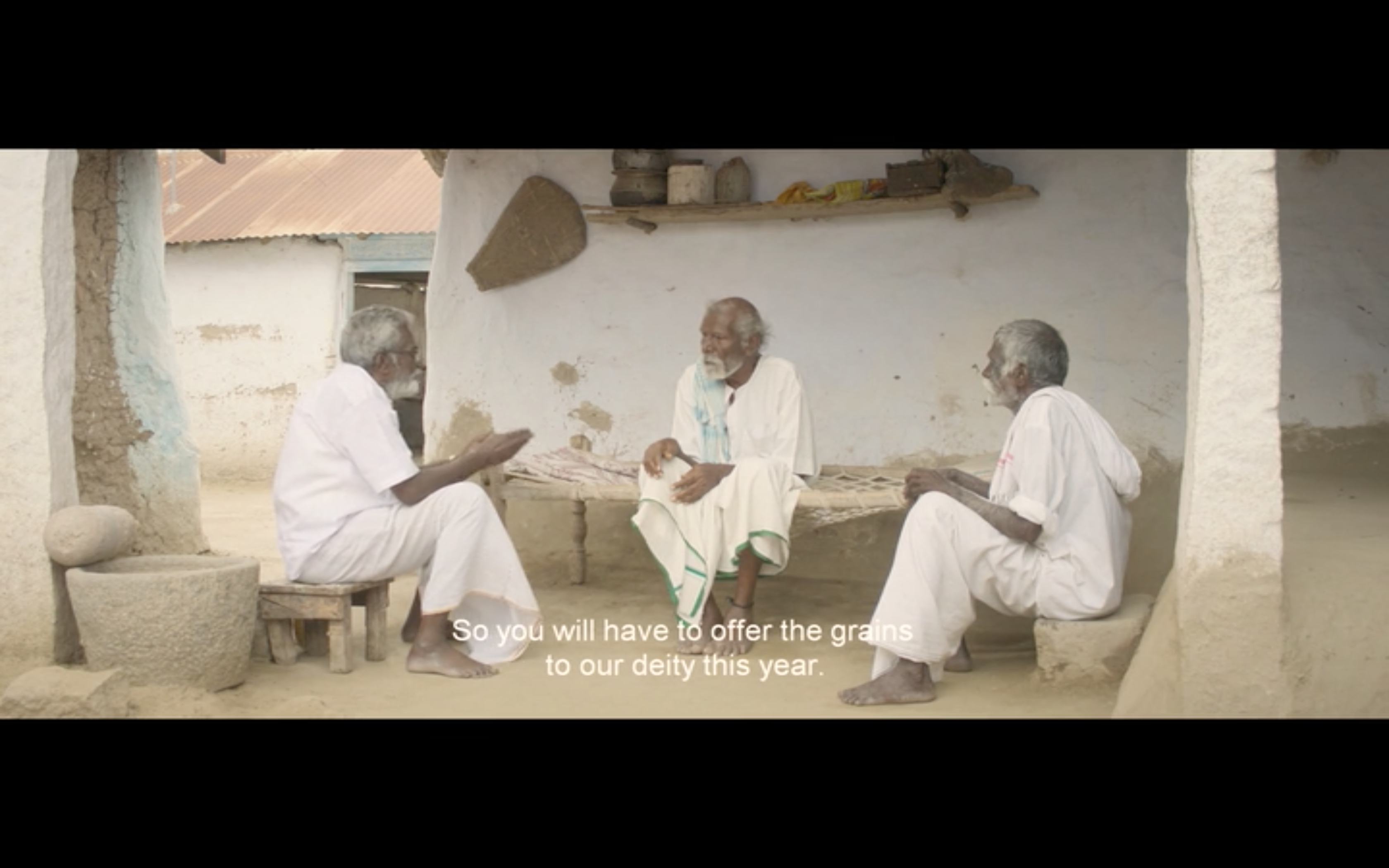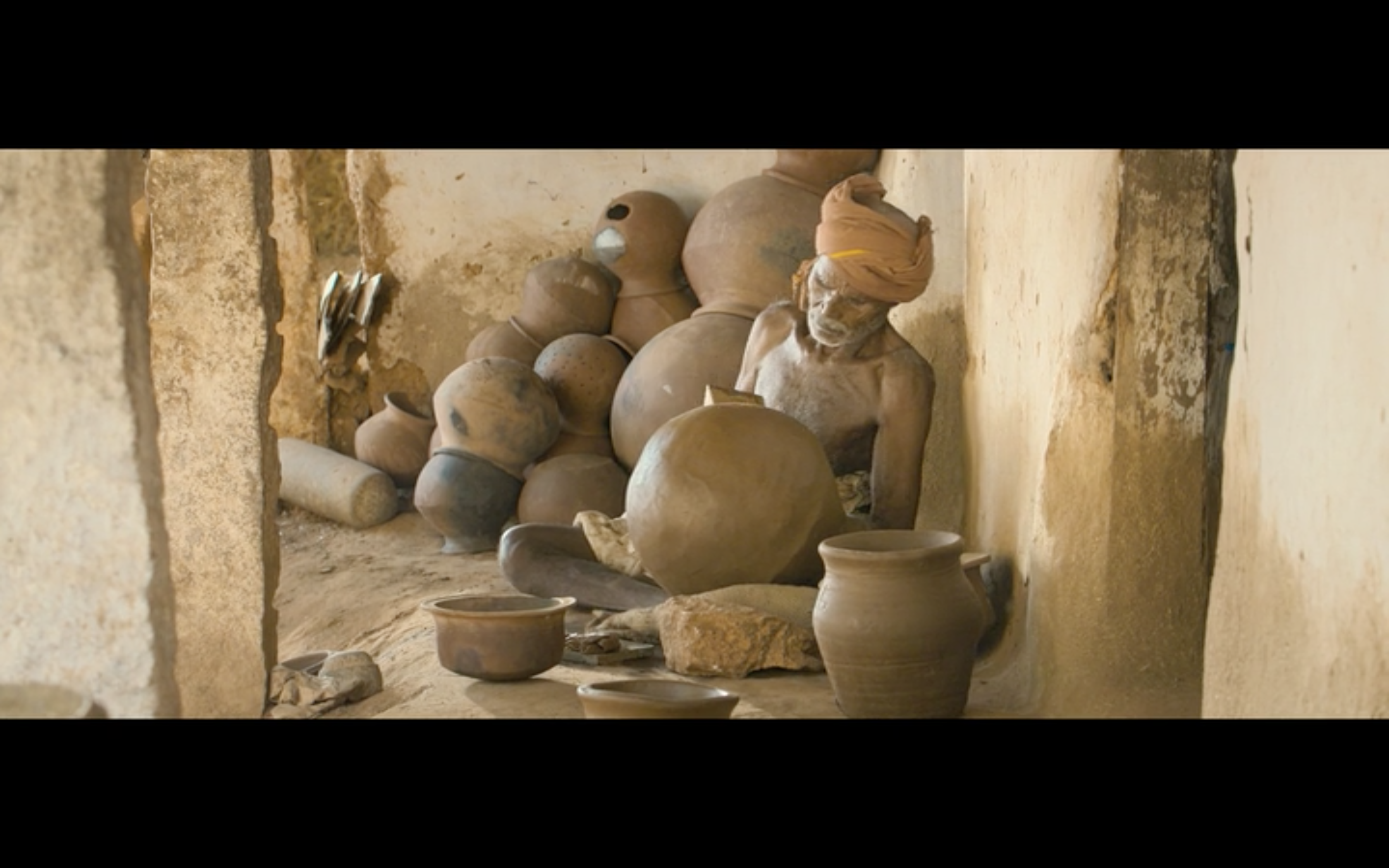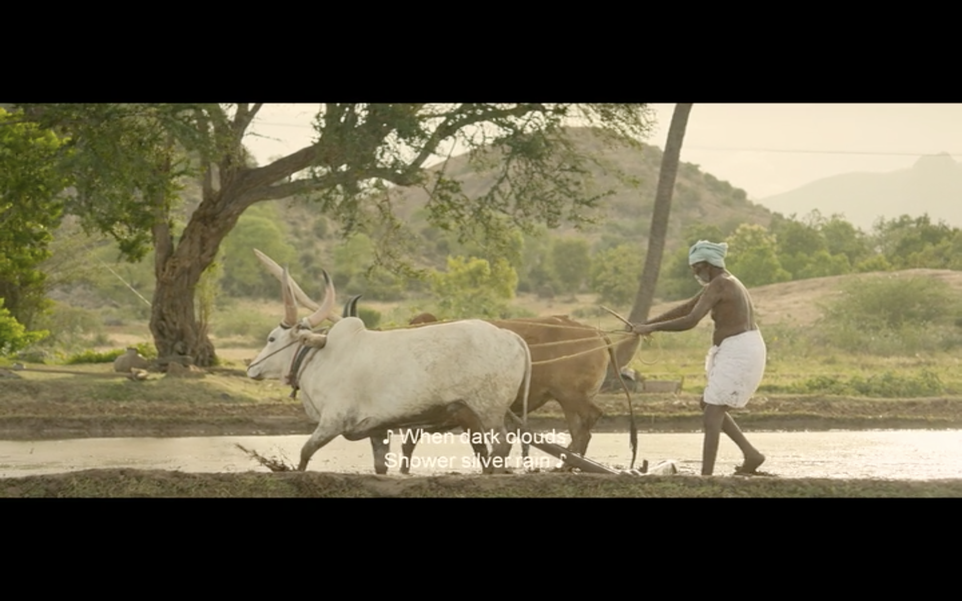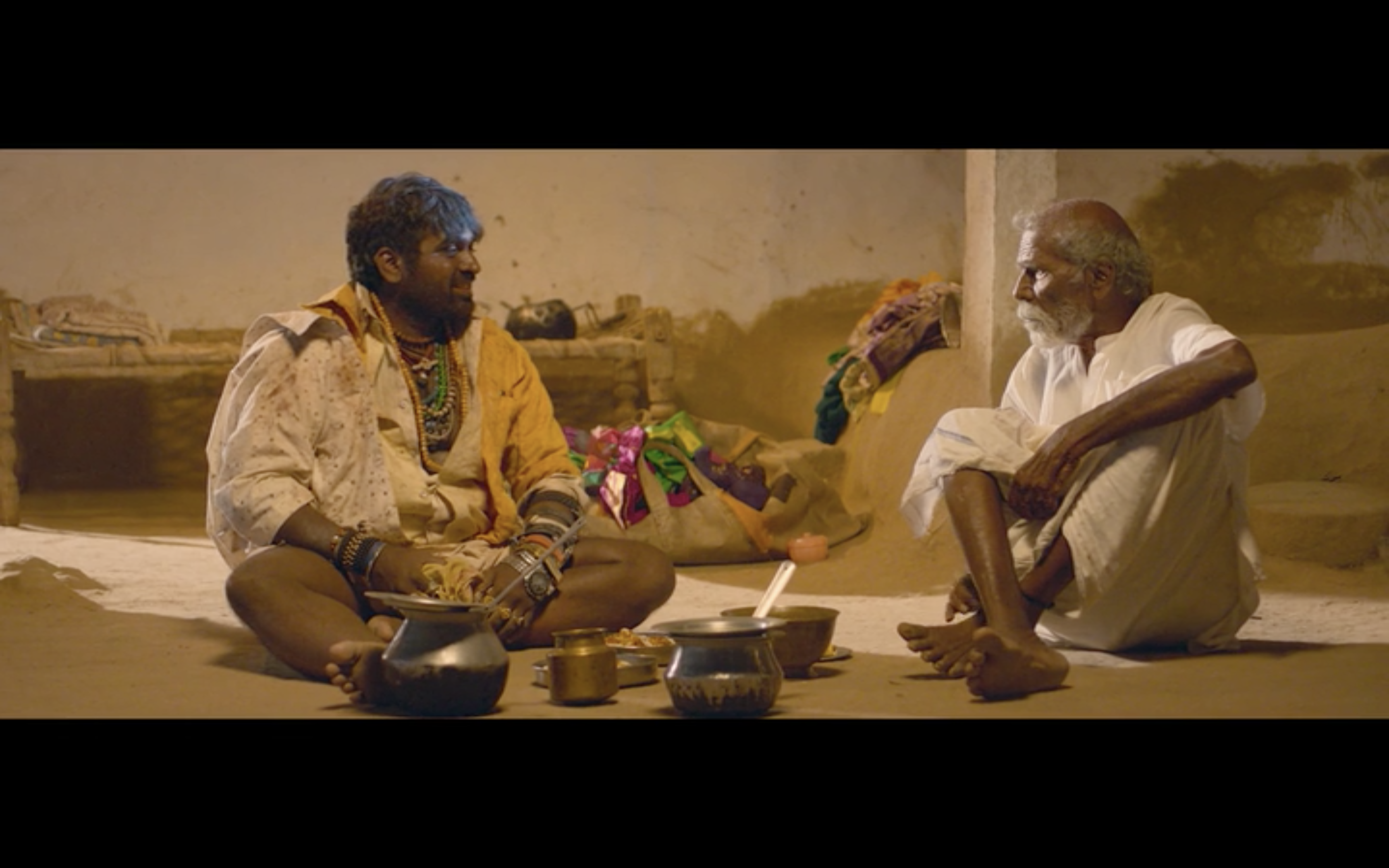 When the village tree is struck by lightning, the elders decide that this is due to not praying at their temple and devise a festival to appease the village god. This involves an offering of rice and as the only farmer left in the village, Mayandi is tasked with producing the first grains needed for the festival. At the same time, the villagers approach the last potter to make the clay pot and horses needed for the ceremony. He too is elderly and frail, and the idea of traditional expertise being lost and time-honoured knowledge squandered as no-one takes up these customary trades underlies the plot of the film. There are caste issues in the village too and most of the villagers have sold their land to developers as the lack of water makes farming unprofitable and just too hard. Once of the villagers (Yogi Babu) has bought an elephant from the proceeds and points out that he makes more money each day from his elephant than he ever did farming. Against this backdrop, Mayandi’s decision to keep farming seems inexplicable, but he explains that without farming, he would have no reason to get out if bed each day. It’s all he has ever known, and it is his life – it is as simple as that.