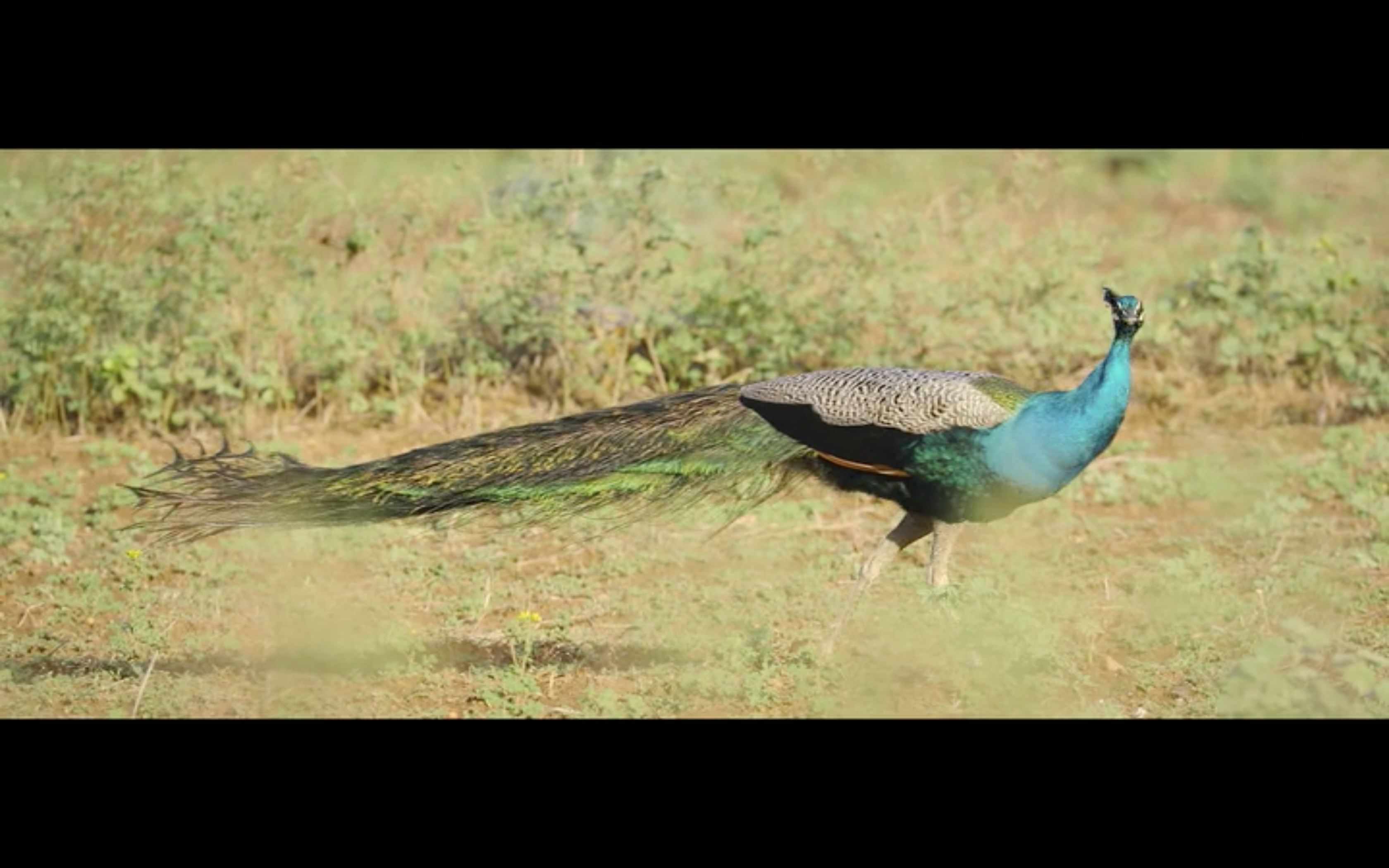 What impresses me most about Kadaisi Vivasayi is the excellent cinematography and the almost documentary feel to the early part of the film as Mayandi, his life and the village are all introduced. When I worked in Tamil Nadu I stayed in small villages, one near Tiruchirappalli (Trichy) and one near Thanjavur, where I saw scenes just like this every day. My family are farmers back in Northern Ireland as well, so this felt like a real step back home for me, especially since my Great Uncle’s farm had no electricity or running water, similar to Mayandi’s house here. Mayandi and his life are introduced by the camera following him through his normal activities. His care of the land and respect for all living things is clear at every stage, while the sheer amount of hard work that he gets through each day is impressive. The slow pace also allows appreciation of the countryside; the shimmer of leaves against the sky, the lush green of new crops and the glory of peacocks, spreading their feathers against the rocks beside the fields are all featured as Mayandi makes his way to the fields.