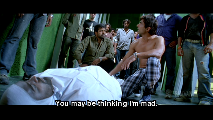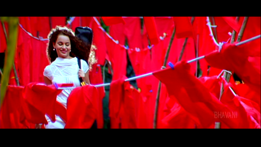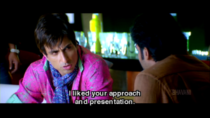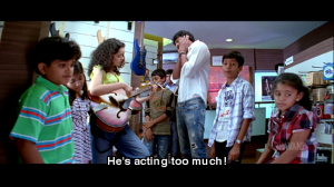 I cannot imagine better casting (apart from the obvious) to play Son of the B than Sonu Sood. He plays it pretty straight but seemed a bit too uptight in some scenes. It may have been the very snug fit of his uniform that caused this effect! Raveena Tandon was terrible. Her orgasmic whimpering every time she spoke to or about Viju and hammy acting were among the few false notes in the supporting ensemble work. I cheered (all by myself, in a near silent cinema) for Prakash Raj and Subbaraju as I knew they ‘got’ the style and would add the level of commitment to badness I love in Telugu films. I didn’t like the girls’ roles at all, and I seem to have managed to almost forget them already. They were just fodder for (often sleazy) jokes, and made too many stupid decisions. I like Charmme but this role was a disappointment for me.
