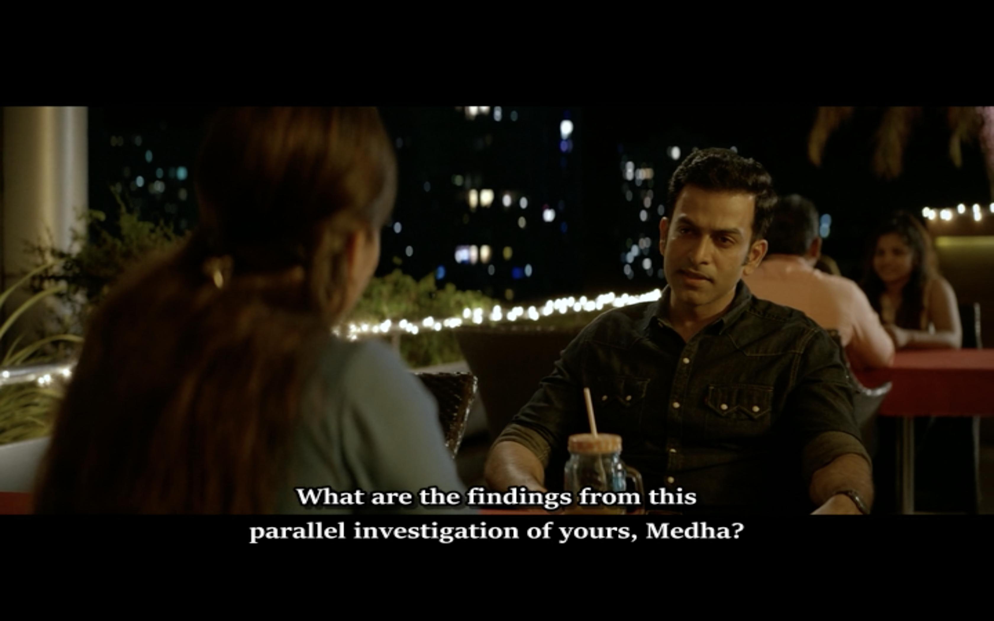 The film follows Joseph’s investigations into the accident, which also draw in his friends and Peter as they try to track down the car which hit Stella and the people who assisted by taking her to the hospital. During the investigation, Joseph’s past is revealed including his previous relationship with Lisamma (Madhuri Braganza) and the tragic death of his daughter Dayana (Malavika Menon). The details all come together to reveal a conspiracy at the hospital, which is rather far-fetched but does allow the story to neatly tie all the ends together.