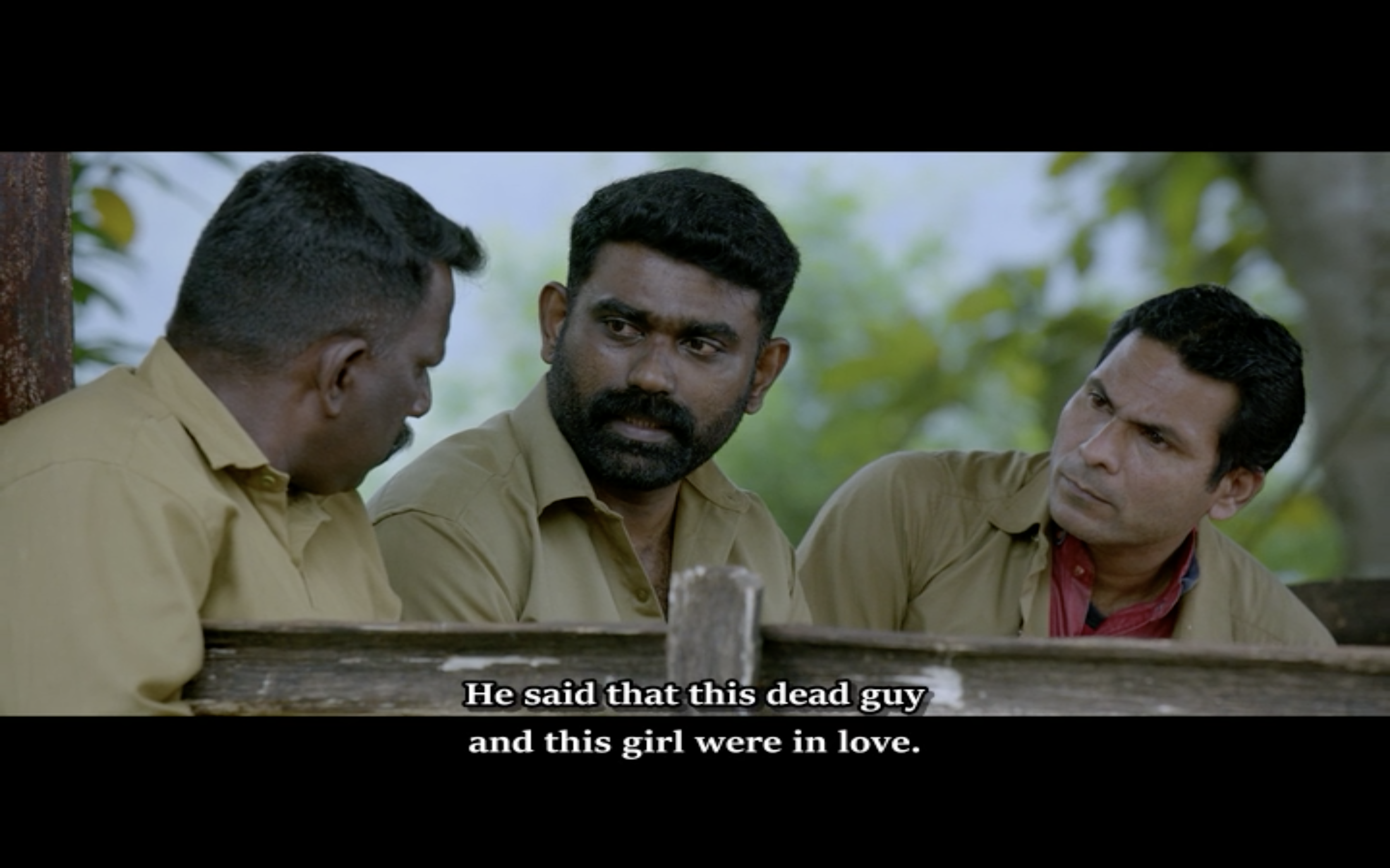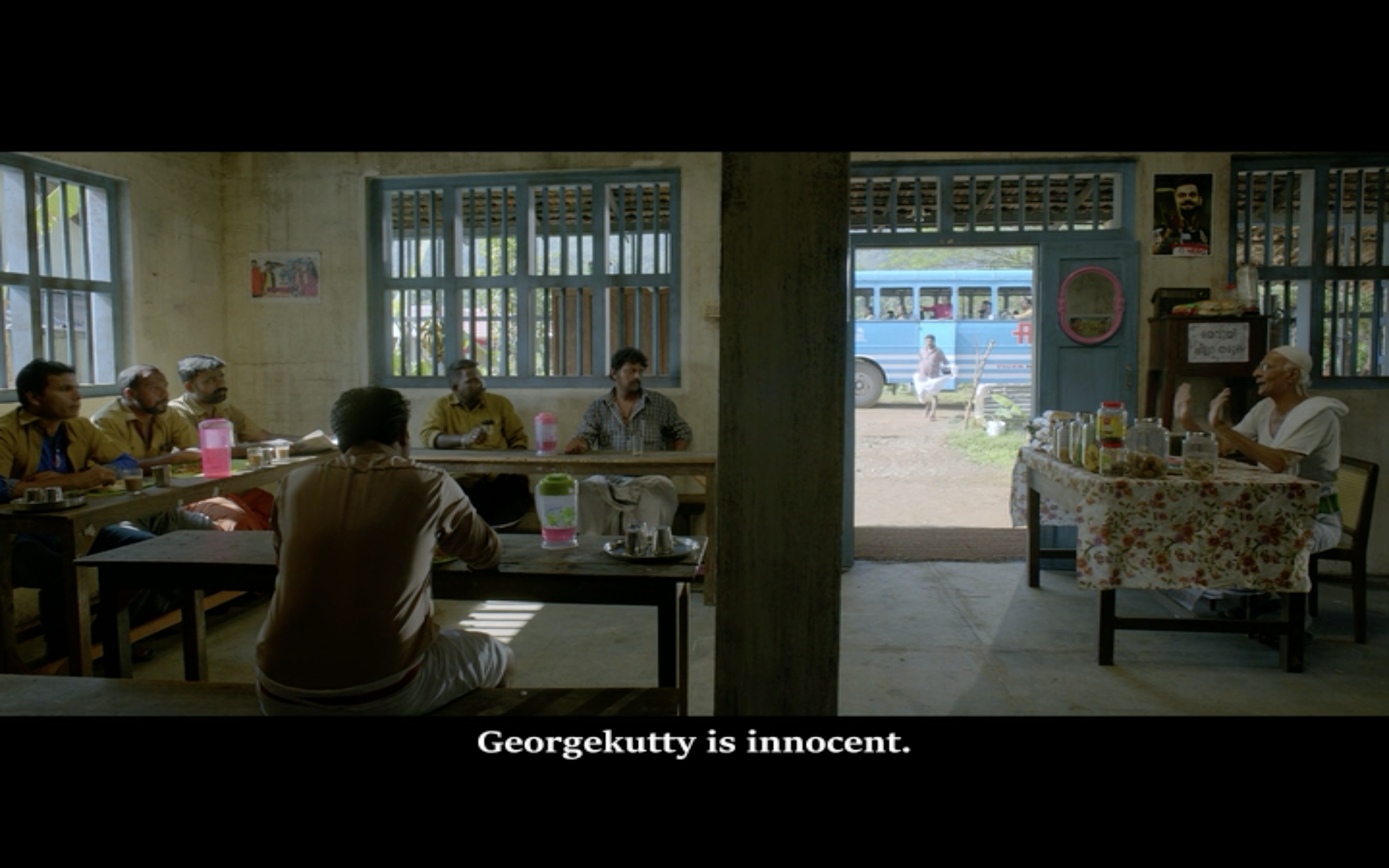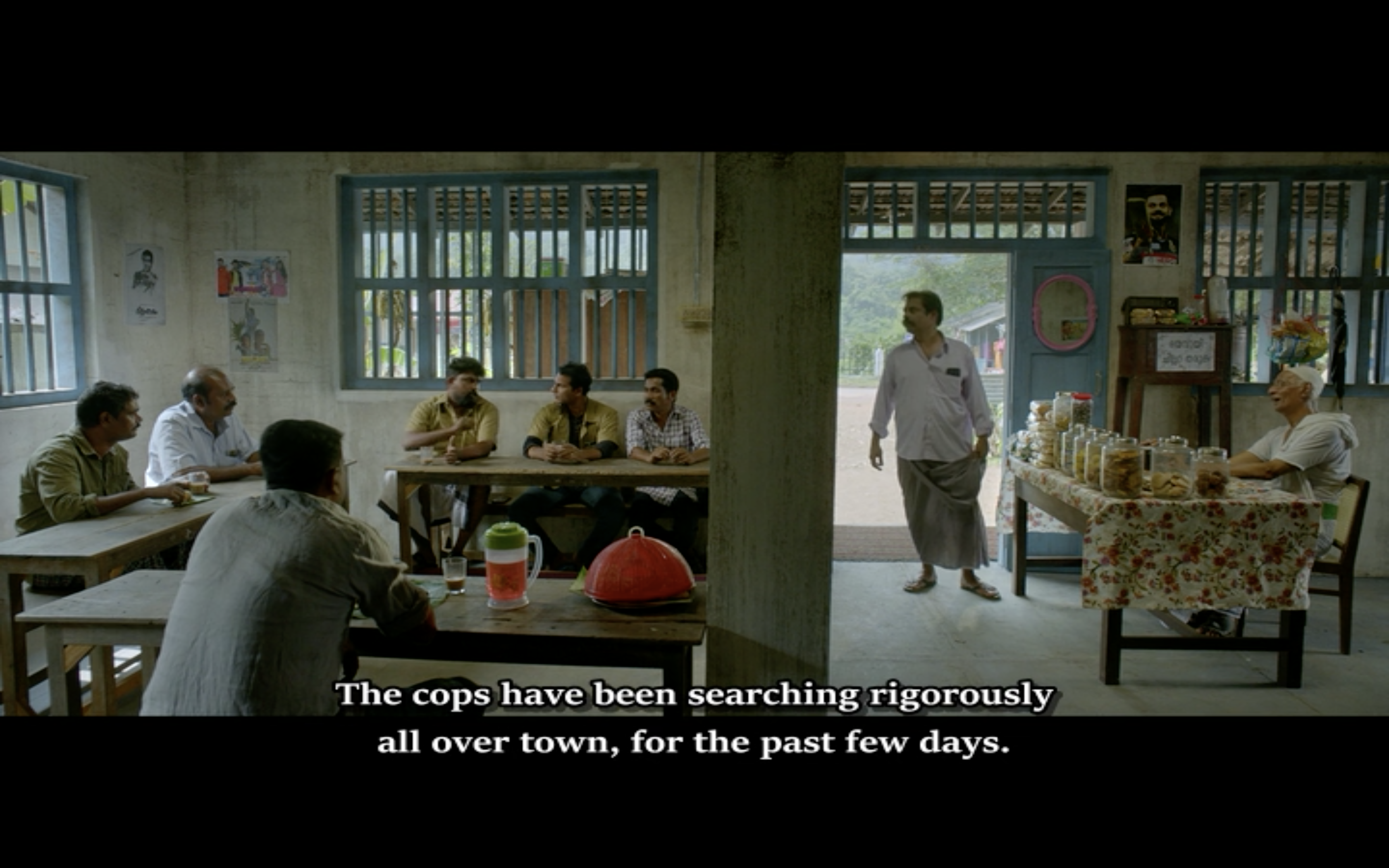Having introduced Joseph as a solitary man who enjoys smoking, whiskey and marijuana, we then see a different side to Joseph on a day out with his friends (James Elia, Kijan), Sudhy (Sudhi Koppa) and Sidique (Irshad). I love the song they sing on their road trip, although the subtitles on the version I saw oddly substituted ‘rowers’ for ‘flowers’ which makes no sense to me at all. This is a more social side to Joseph and it’s clear to see why his friends respect him and enjoy his company, even if they don’t understand his wish to be alone in his house.