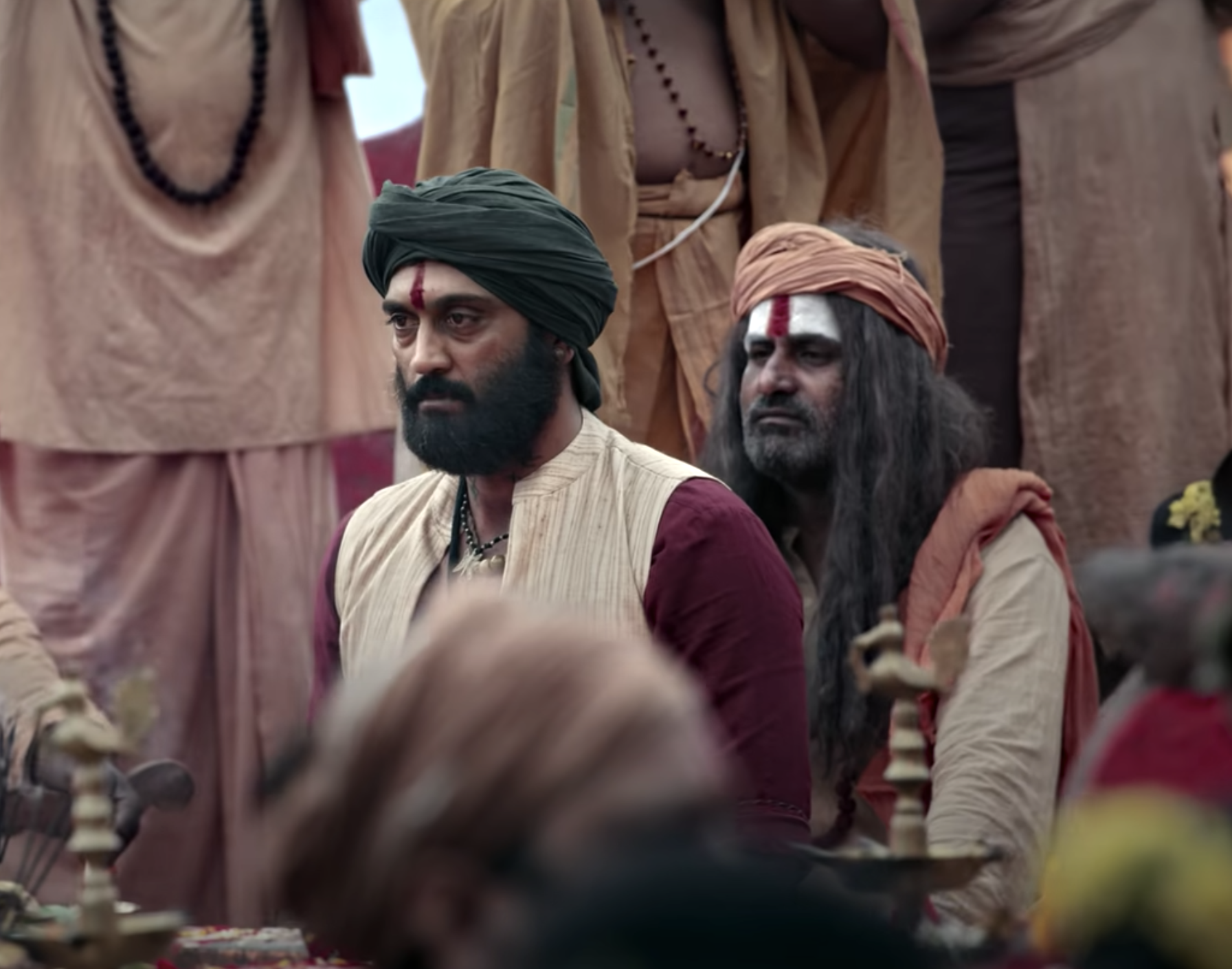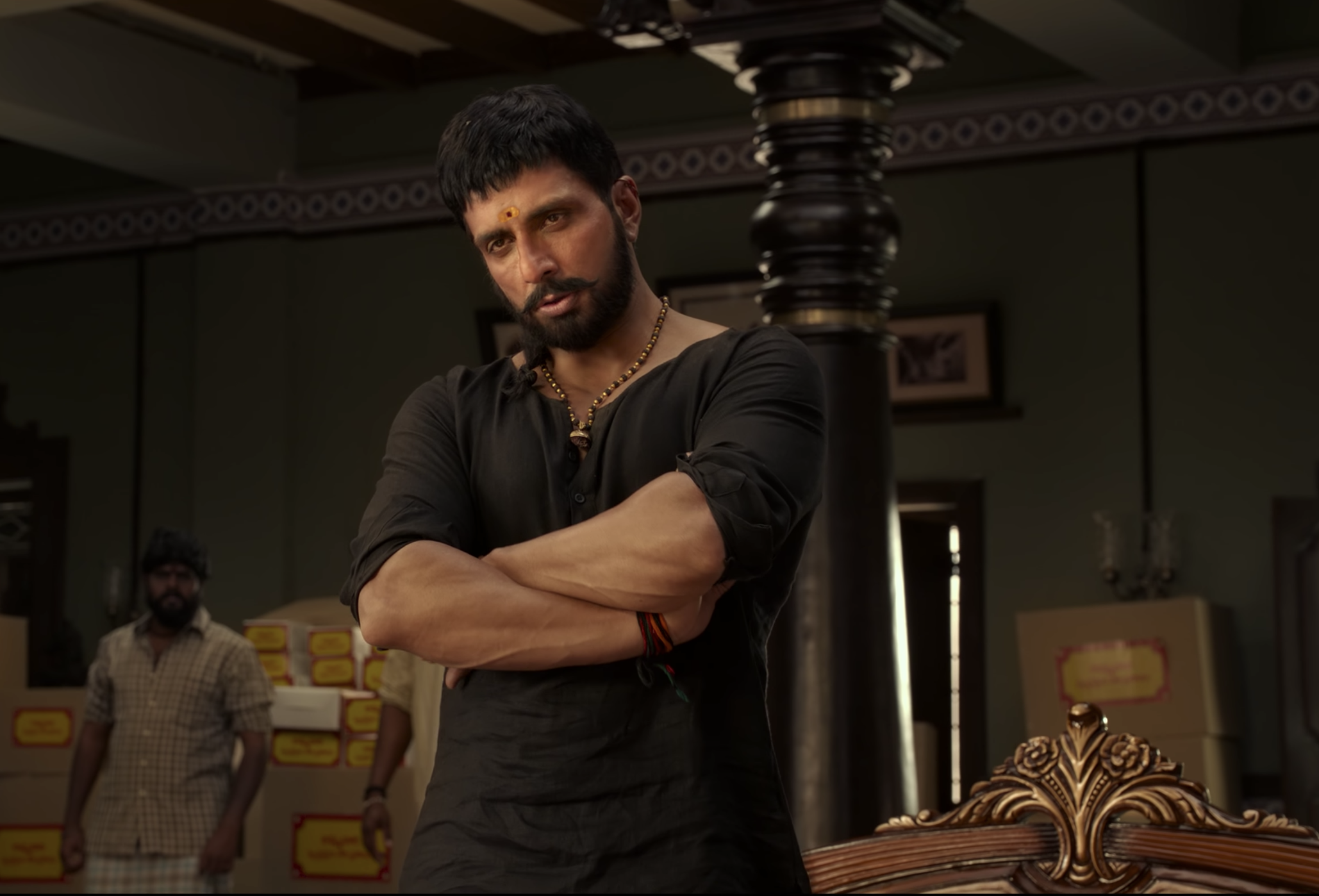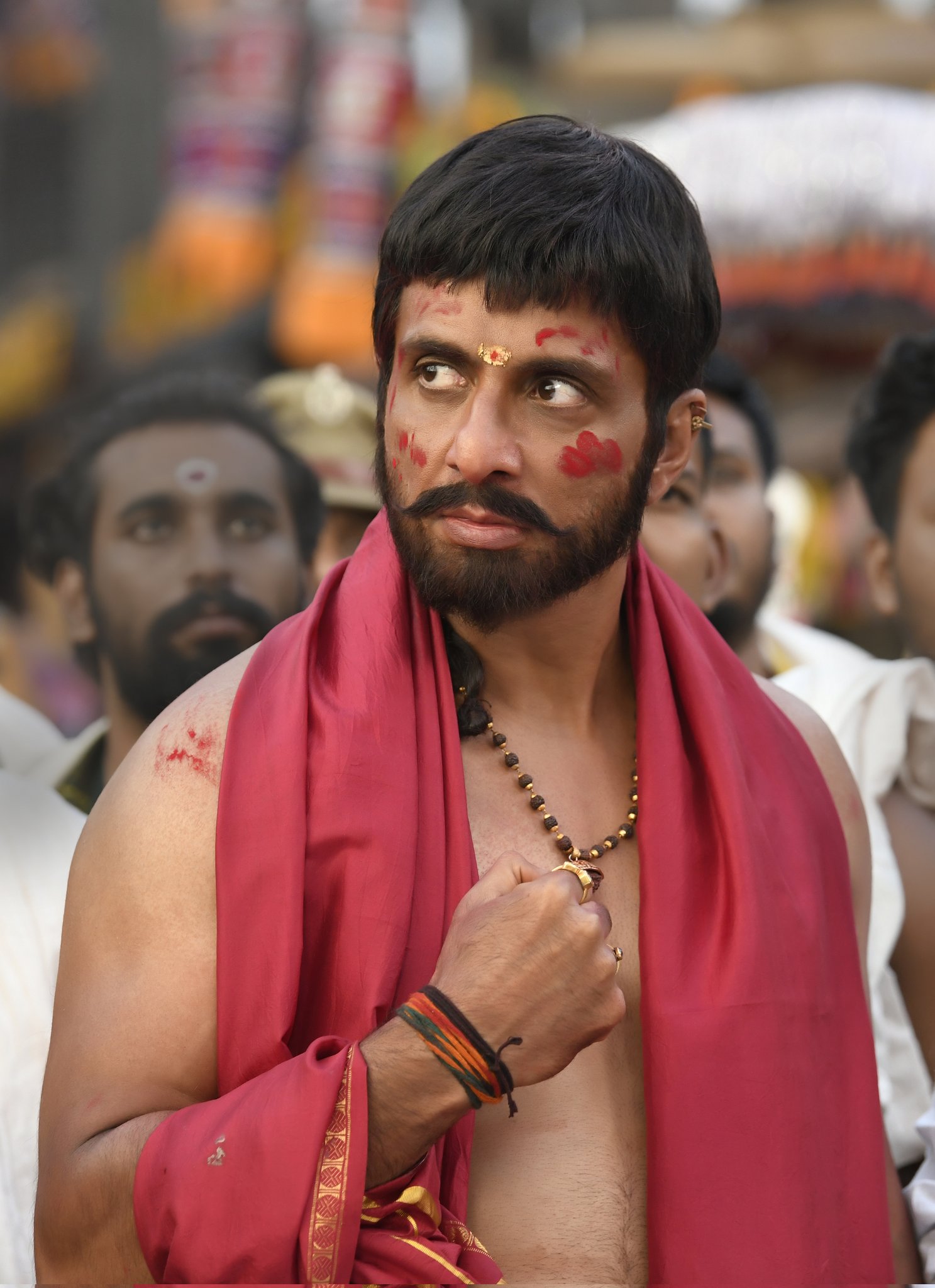 Excitingly for me, CinemaChaat favourite Ajay is playing the role of Vedanna, the leader of the Padaghattam people. Their belief in Dharma means that they are peaceful and won’t fight back when threatened, leaving them vulnerable to the corrupting influence of local bigwig Basava (Sonu Sood). I really enjoyed seeing Ajay in this more pacific role where he gets the chance to emote, conveying emotion using just his eyes and facial expressions instead of just being thug #1. I thought he was excellent here and kept smiling ecery time he appeared onscreen.