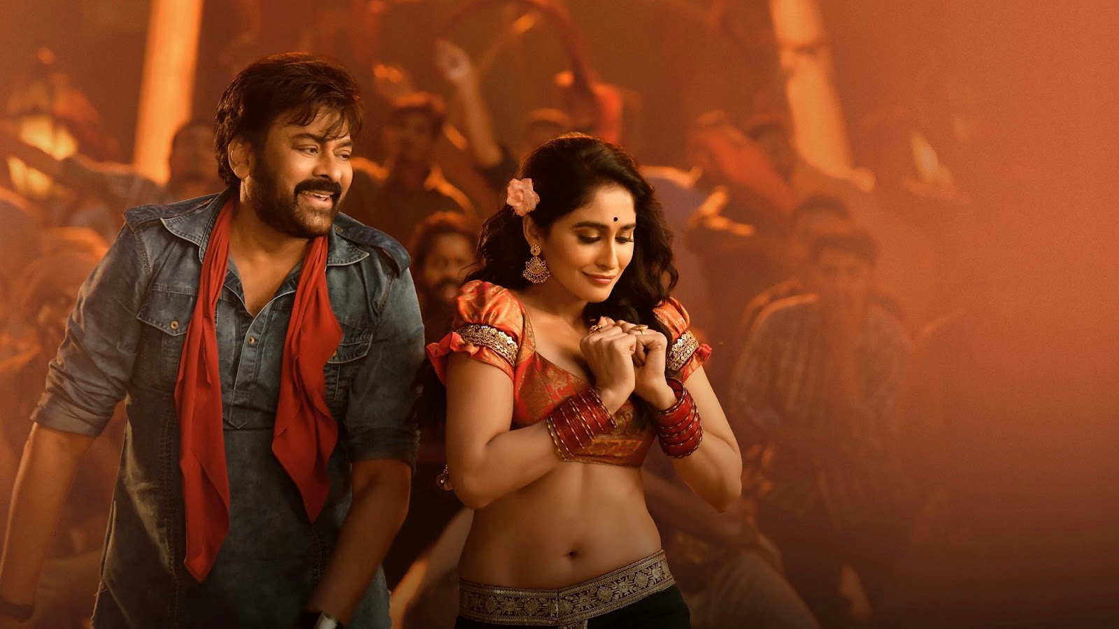 It’s a fairly standard story for SI cinema and Kortala Siva doesn’t add anything new to the tale. The hero arrives, the bad guy’s motivations are explained, and then they fight. Mix in a lot of discussion of Dharma, a dash of Temple festivals, Ayurvedic medicine and Naxalite freedom fighters and there you have it. The first half has gorgeous sets from production designer Suresh Selvarajan and cinematographer S Thirumavukkarasu makes the most of the sumptuous colours and beautiful scenery. I loved the first song  Laahe Laahe, featuring the stunning Sangeetha Krish, which bursts with colour and energy against the backdrop of the temple. And of course, add in Chiru dancing and it’s a total winner!