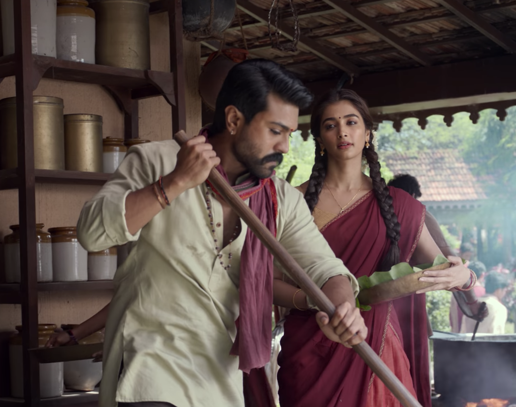 Seasoned actors Nassar, Tanikella Bharani, Ravi Prakash and Vennela Kishore also put in an appearance and are all excellent in the type of roles they have played many, many times before. I’m not sure why Rathod’s main henchman Khilla (Shatru) had to have a deformity, but the bad guys are mostly faceless and evil because that’s what bad guys just are. Sonu Sood does his usual villain schtick effectively despite limited screentime and those dreadful wigs. But poor Pooja Hegde. After Beast I was hoping she would have a bigger role here, but she has even less to do here. Her character is mostly used as the reason for Acharya to explain Siddha’s history and apart from a song and a brief romance she barely appears in the film.